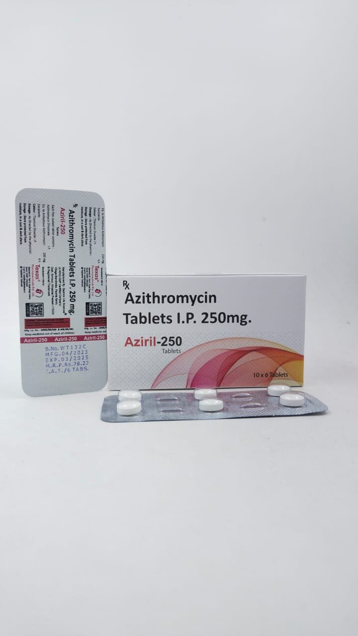 (AZIRIL-250) Azithromycin Dihydrate Tablets are used to treat certain bacterial infections and typhoid fever. It is used in bacterial infections such as bronchitis, sexually transmitted diseases (STDs), pneumonia, and infections of the sinuses, skin, throat, ears, lungs, and reproductive organs.