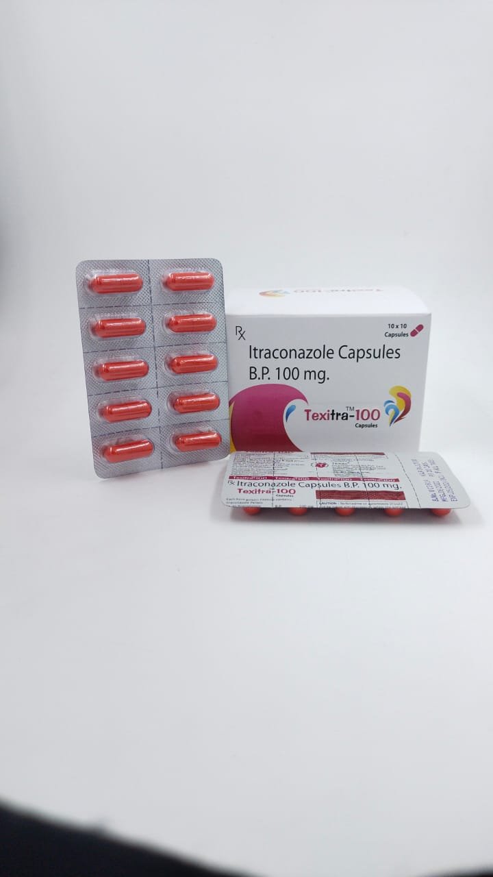 Itraconazole is a potent antifungal agent used to treat fungal infections of the mouth, throat, toenails, fingernails, or lungs. Texas Pharmaceuticals delivers the best quality Itraconazole 100mg capsules under the brand name TEXITRA 100. The capsules are available in the 10X1X4 pack size of blister packaging. You can also collaborate with Texas Pharmaceuticals for PCD franchise and third-party manufacturing services across various regions in India. The capsules are formulated with the finest quality raw materials processed in a GMP-certified facility. The antifungal capsules shall be stored in a cool and dry place away from direct sunlight.